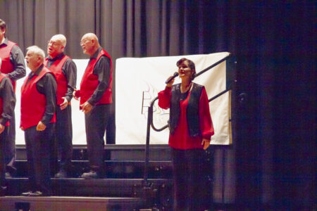 The show began with The Remnants, whose set list was themed “Americana” and included such tunes as “This Land is Your Land” and “When Johnny Comes Marching Home Again.” One member of the Menominee River Chorus, an all-women group, joined for a solo in “America the Beautiful.”