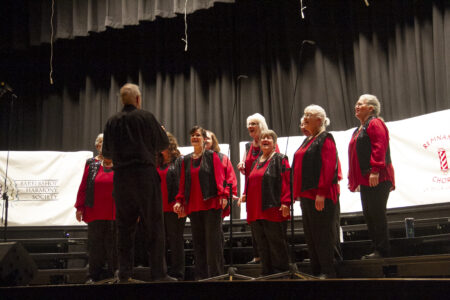 The Menominee River Chorus, an all-women barbershop group, sings at the Harvest of Harmony concert Saturday. (R. R. Branstrom | Daily Press)