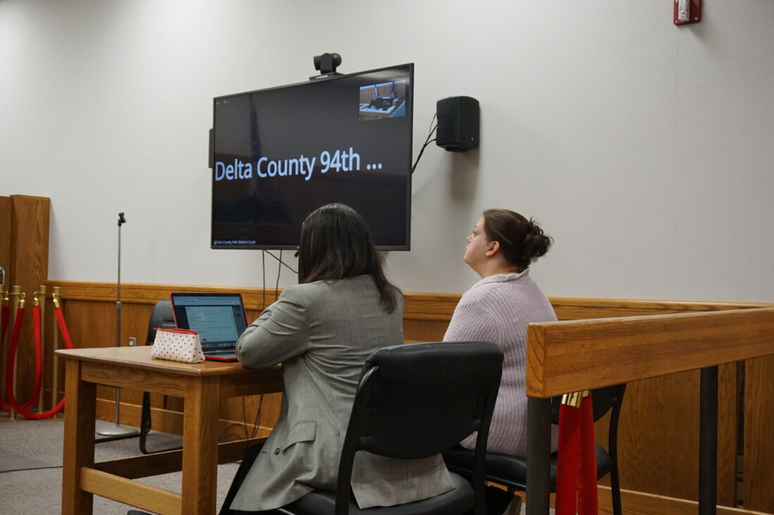 Jenna Leigh Furmanski, right, and attorney Dana Harper at a hearing Thursday asked Judge Steve Parks to modify her bond conditions so Furmanski could handle medication at her workplace. Parks denied the request. (Sophie Vogelmann | Daily Press)