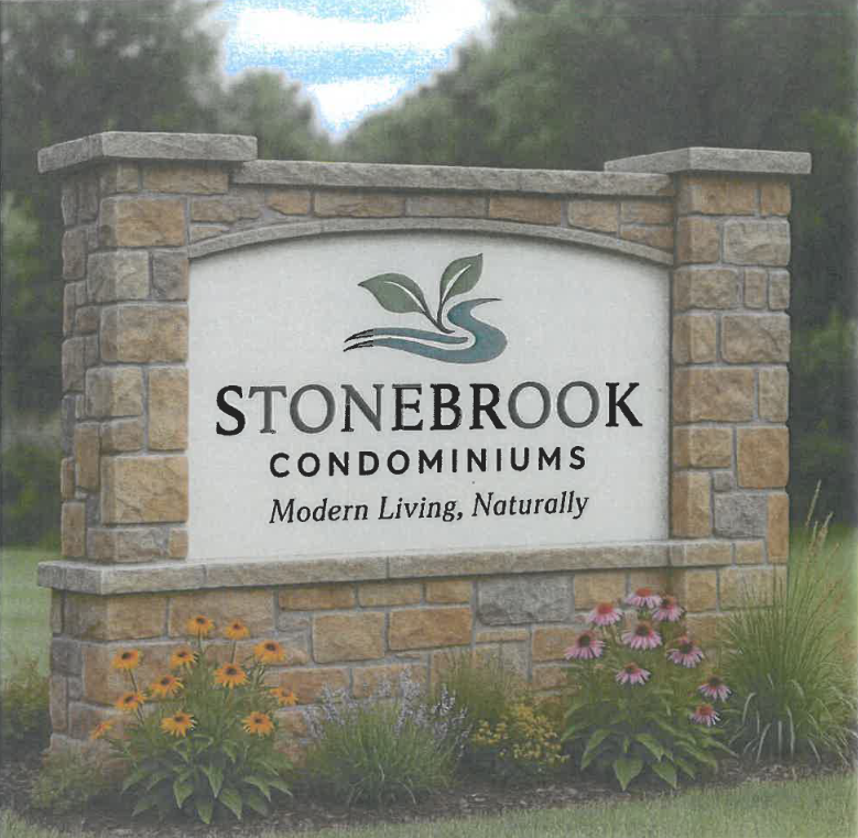 The Escanaba City Council has accepted Old State Development's bid of $75,000 for the 5.17-acre parcel located near Willow Creek Road and Third Avenue South. Stonebrook Condominium created a rendering of what their future sign may look like.(Courtesy photo)
