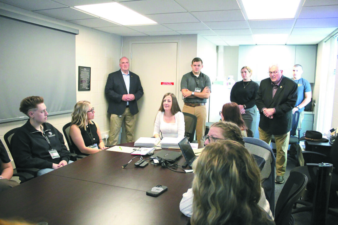 Holly Letson, granddaughter of Helen Dymond, speaks to Northern Michigan University cold case students on family history and the area of National Mine. Dymond went missing in 1981 on County Road 496 walking from the then-Tilden Township Hall. (Antonio Anderson | Mining Journal)