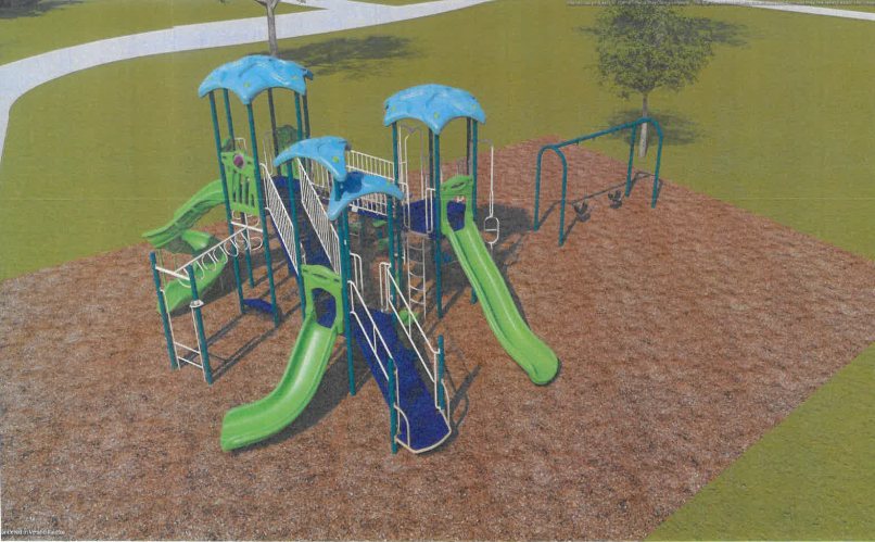 - The Delta County Board on Tuesday approved funding that will be matched and reimbursed through grants for playground equipment to be installed at OB Fuller Park next spring. There are multiple playgrounds and various pieces planned with the project. (Courtesy photo)