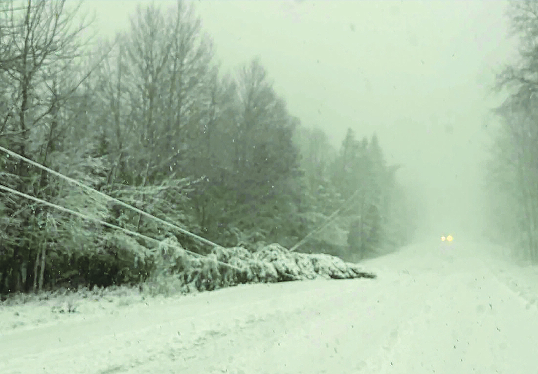 Severe winter weather hit the Upper Peninsula late Tuesday and continued into Thanksgiving Day. The wet, heavy snow, coupled with high winds, brought down power lines in the Copper Country area, knocking out power to thousands throughout Houghton, Ontonagon, Keweenaw and Baraga counties. This photo was taken Wednesday morning on M-203 near the intersection of Lakeshore Drive in Houghton County. (Paula Porter, for the Daily Mining Gazette)