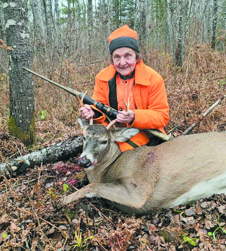 Diana Peterson, 88, of Marquette, said she has been hunting since the age of 15. A sharp eye and steady hand served her well from a blind on public property in the Republic area, spotting several doe down range some 50 yards before the buck appeared.