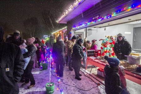 Fireworks, a raffle, auctions, food and drink and visits from the Grinch and Santa Claus were all part of the 10th-annual tree lighting Saturday in the front yard of Carter McDonough’s home on View 17.5 Drive in Soo Hill. The event, which was bursting with attendees, raised funds for Shop with a Cop, an activity coordinated through the Delta County Sheriff’s Office that pairs children with law enforcement officers to go holiday shopping. McDonough, now 16 and a junior at Escanaba High School, first organized the event after attending the city of Escanaba’s tree-lighting ceremony as a young child.