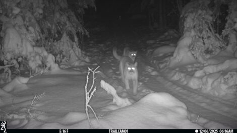 A private landowner sent the trail camera photo of the cougars to the DNR on Sunday. Roell verified the site of the photo Monday and the DNR’s cougar team confirmed the photo Tuesday by enhancing the nighttime image to verify the existence of the three cougars. The sex of the juveniles is unknown.