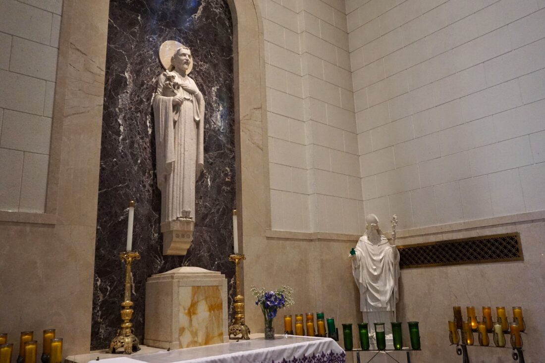 - The marble inside St. Joseph & St. Patrick Parish Catholic church was imported from Italy in the late 1930s, most likely on a ship that came into Escanaba’s harbor. St. Anthony of Padua holding Jesus as a baby stands to the right of Jesus toward the front of the parish. (Sophie Vogelmann | Daily Press)