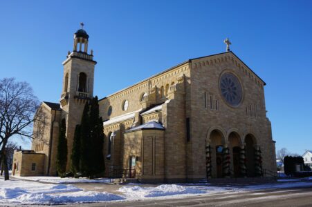 Towards the end of the Great Depression in 1937, William and Catherine Bonifas paid for construction of the church that stands today, as well as the William Bonifas Auditorium and Gymnasium, which was also used for Masses.