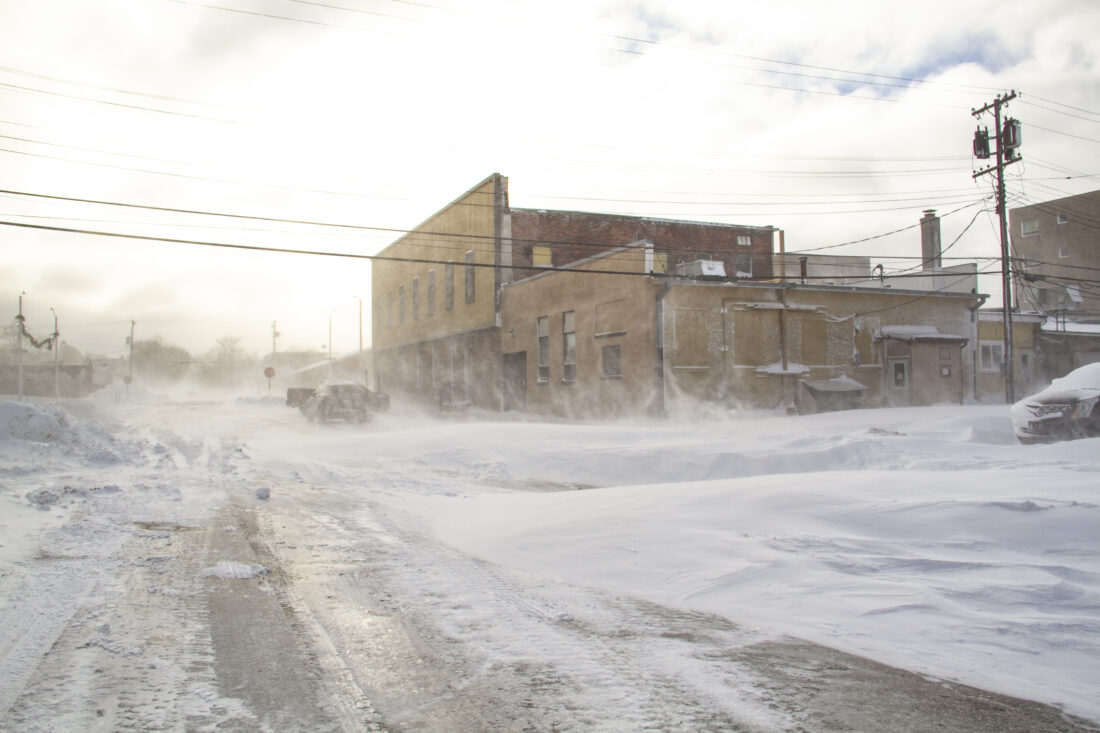 In Escanaba, the snow had mostly stopped falling by 1 p.m. But persistent winds continued to make visibility and travel difficult, as the existing snow was blown around — the changing snowdrifts were like shifting dunes.