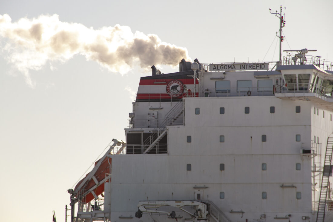 The Algoma Intrepid, a six-year-old self-discharging bulk carrier built in Croatia, flies under the Canadian flag. Owned by the Algoma Central Corporation, it belongs to the Equinox class and has a carrying capacity of 25,019 tons deadweight. The freighter frequents Goderich, Ont. — home to the largest underground salt mine in the world.