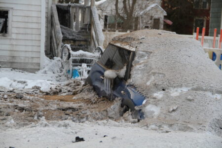 - A charred house and ice- and ash-covered lawn are shown Monday after two fires on Friday. (R. R. Branstrom | Daily Press)