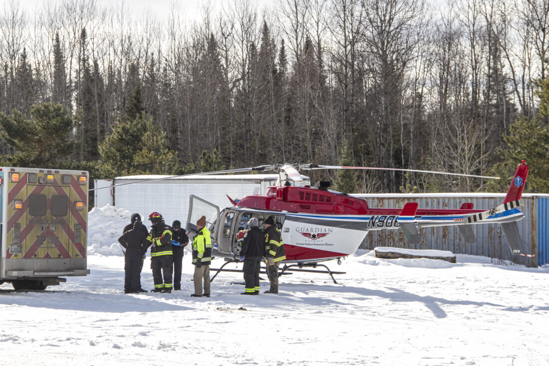 - Staged alongside M-35 in Brampton on Thursday, a Guardian Flight helicopter prepares to airlift a severely injured patient. (R. R. Branstrom | Daily Press)