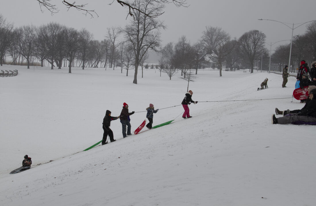- Children pull themselves up a rope on a hill in Ludington Park in Escanaba after sledding down during last year’s winter. (R. R. Branstrom | Daily Press)