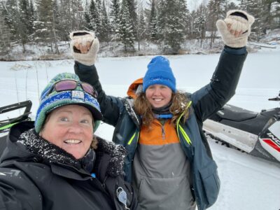 - Corie Berrigan and Brittany Weirich, both Yoopers and avid anglers, are two of the several instructors conducting the women’s ice fishing clinic this weekend. (Photo courtesy of Corie Berrigan)