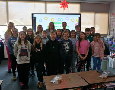 Rebekka Bruce’s fourth-grade class at James J. Jones Elementary in Gladstone posed for a photo with representatives of Billerud’s Escanaba Mill on Friday. Heidi Berg, human resources generalist, Brooke Loman, executive administer, of Billerud, visited the class to present on the Daily Press’ Design an Ad contest and their business’ role in the promotional event. Pictured from left to right, back row: Melanie Smith; McKinley Maggart; Heidi Berg, human resources generalist of Billerud in Escanaba; Brooke Loman, executive administer of Billerud in Escanaba; Rebekka Bruce, fourth-grade teacher at Jones Elementary; Carter Hinrickson; and Mason Crevcoure. From left to right, middle: Nora Rosinski; Natalie Belongie; Sawyer Huber; Evelyn Eugate; Kynley Lindbert; and Finnly Davison. Pictured from left to right, front: Addy Murray, Liv Hunt, Hudson Olson, Fisher Jacobsen, Rylee Hardwick; and Paislee Homernik. (Sophie Vogelmann | Daily Press)