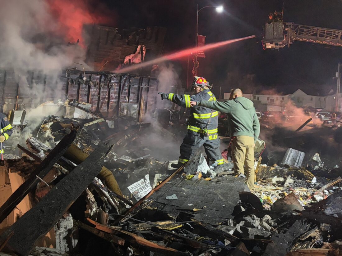 Three businesses – Sports Page Lounge, The Pampered Paw, and Lucky Rabbit Tattoo -and two apartments were lost in the fire. John Boy’s Restaurant survived with smoke and water damage.