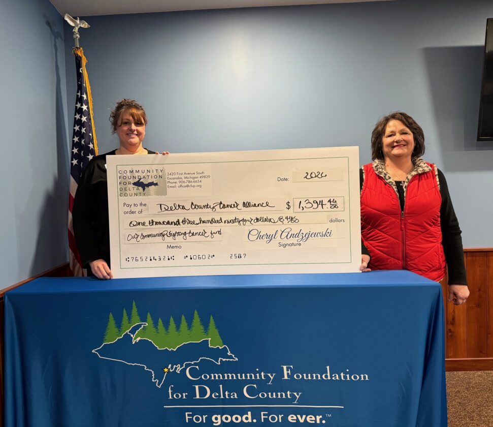 ESCANABA — Our Community Fighting Cancer donated $1,394 to the Delta County Cancer Alliance on Monday.