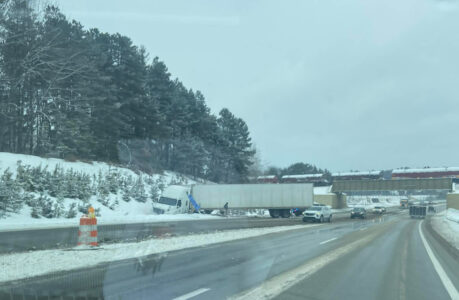 ESCANABA – A semi has run off the road just before the Tom Casperson Memorial Bridge heading North of Escanaba.