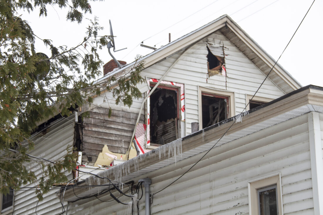 Shown midday Sunday from the northwest is a duplex on Fourth Avenue South that caught fire that morning. One person is recovering in the hospital. (R. R. Branstrom | Daily Press)