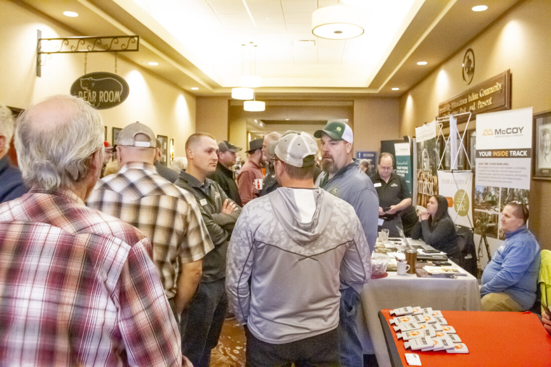 The Island Resort and Casino will again host the Great Lakes Logging and Timber Professionals Association's Spring Celebration next month. This shot of attendees milling near vendor booths is from the same event in 2024. (Daily Press file photo by R. R. Branstrom)