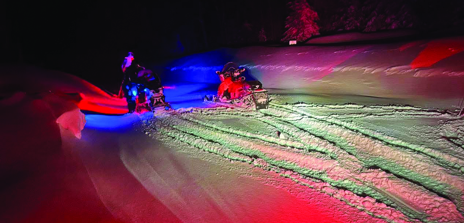 The Luce County Sheriff’s Office requested assistance from the Michigan Department of Natural Resources Law Enforcement Division. A DNR conservation sergeant, along with additional eastern Upper Peninsula conservation officers responded on snowmobiles. The team staged at County Road 500 and proceeded toward the GPS coordinates provided by dispatch.