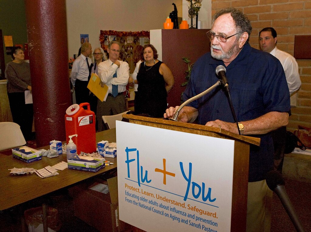 - Jim Murphy, CEO of Pima County Council on Aging, right in front, encourages seniors to get their flu shot before the start of the flu shot clinic at the Armory Park Senior Center in Tucson, Ariz., a few years ago. This clinic was part of the “Flu + You” initiative to educate 65 and older adults about available flu vaccine options. (John Miller/AP Images for NCOA)