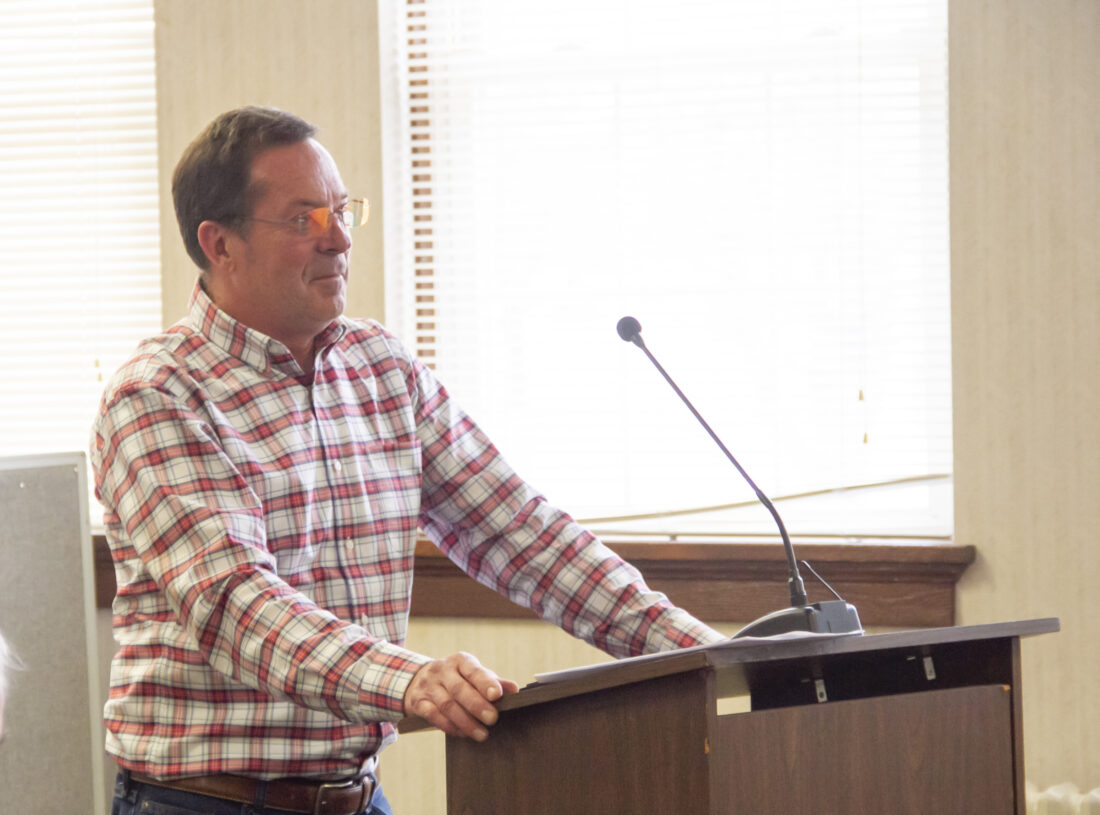 - Jim McNeil of Delta Force PI, LLC speaks to the Gladstone City Commission about his ideas for next year’s Fourth of July Fireworks. (R. R. Branstrom | Daily Press)