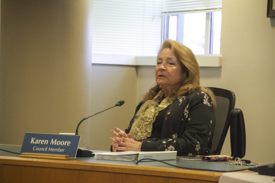 - Escanaba City Council Member Karen Moore expresses a concern that the leading candidate for city manager, while a lovely person, might be underqualified. (R. R. Branstrom)