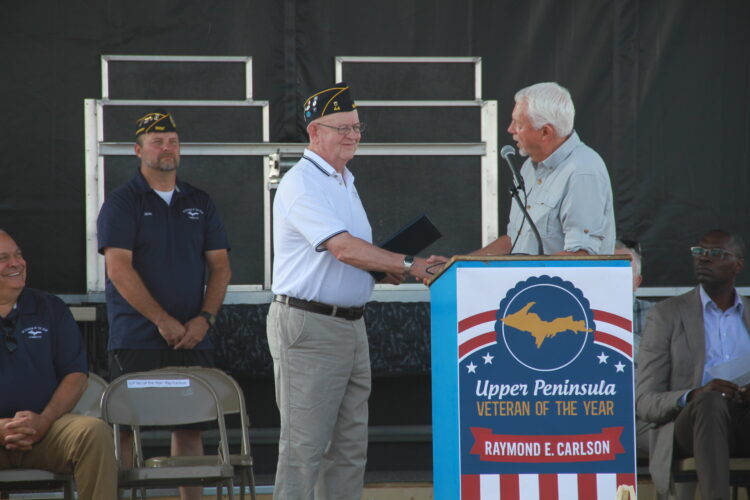 ESCANABA — Michigan Lt. Gov. Gilchrist honored Raymond E. Carlson for being named 2025 Upper Peninsula Veteran of the Year. Carlson, of Negaunee was honored during a ceremony at the U.P. State Fair Thursday morning attended by Gilchrist and other state and local dignitaries.