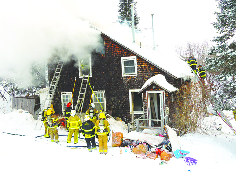 Graham Jaehnig, Mining Gazette | Firefighters returned the scene of an early morning fire Thursday in Painesdale. The initial alarm was turned in shortly after 3 a.m. Fire fighters extinguised the blaze and left the scene only to return a few hours later when the blaze reignited. While the duplex was occupied at the time, the residents were able to escape without injury.