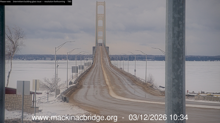 The Mackinac Bridge Authority is monitoring the conditions at various points along the structure, and will post any updates here. Drivers are encouraged to avoid the bridge area to allow maintenance vehicles to operate and wait for the bridge to reopen before approaching.