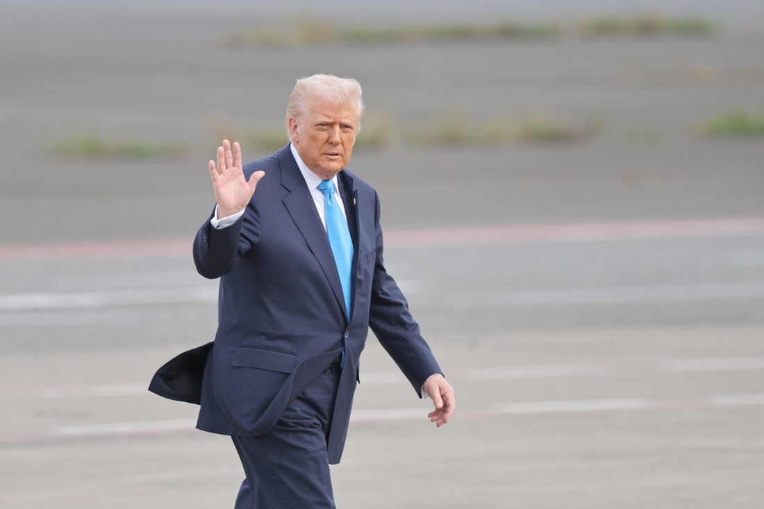 U.S. President Donald Trump walks toward Air Force One at Haneda Airport in Tokyo on Wednesday for his departure to South Korea. (Kim Kyung-Hoon/Pool photo via AP)