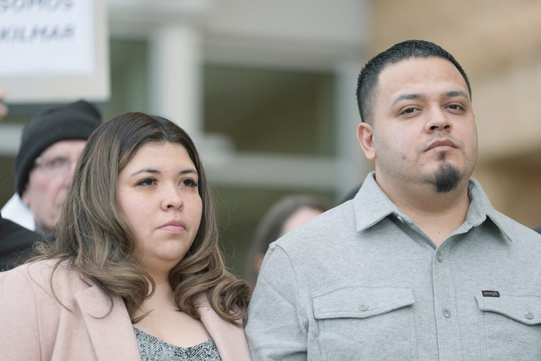 Kilmar Abrego Garcia and his wife, Jennifer Vasquez Sura, leave the U.S. District Court District of Maryland on Dec. 22 in Greenbelt, Md. (AP Photo/Stephanie Scarbrough)