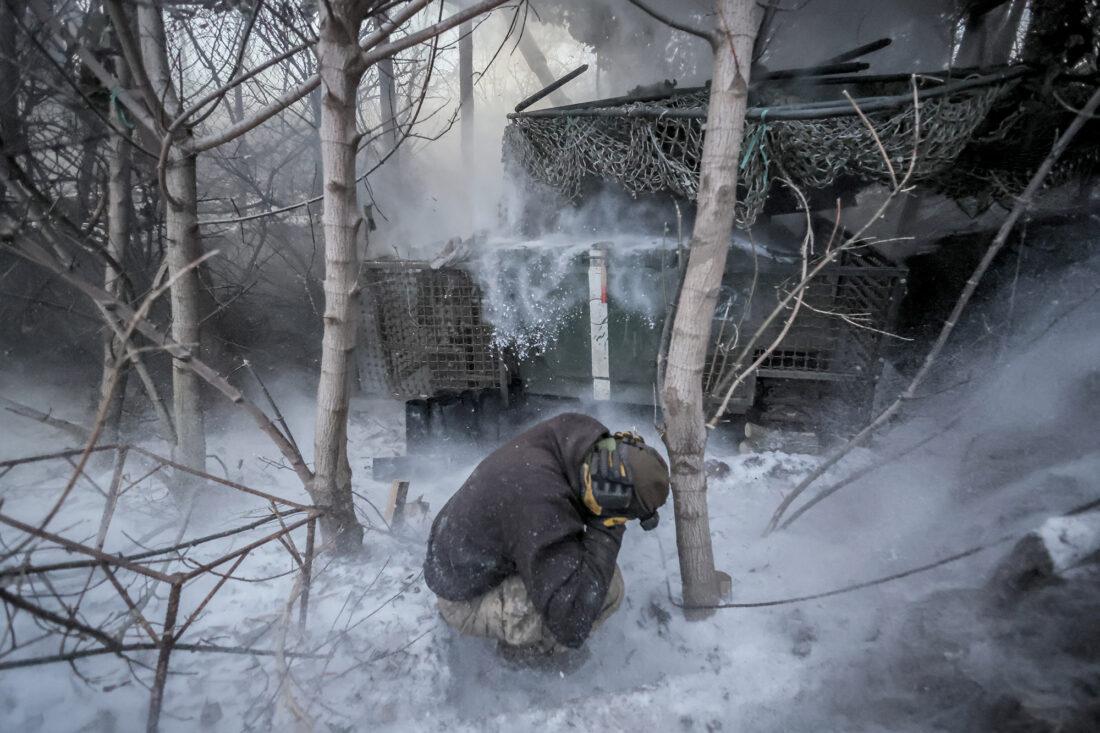 In this photo provided by Ukraine's 24th Mechanized Brigade news service, servicemen fire a 2S1 Gvozdika self propelled howitzer toward Russian positions Jan. 18 near Chasiv Yar town, Donetsk region, Ukraine. (Oleg Petrasiuk/Ukraine's 24th Mechanized Brigade via AP)
