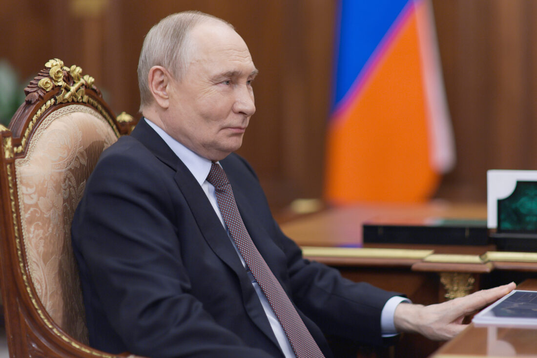 Russian President Vladimir Putin attends a meeting Friday with Nizhny Novgorod Region Governor Gleb Nikitin at the Kremlin in Russia. (Gavriil Grigorov, Sputnik, Kremlin pool photo via AP)