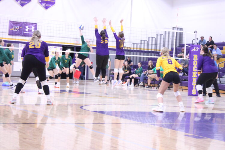RAPID RIVER — The Rapid River Rockets won the first round of this year's district bracket against the Mid Peninsula Wolverines in 4 sets. (20-25, 25-20, 25-18, 25-19) here Monday