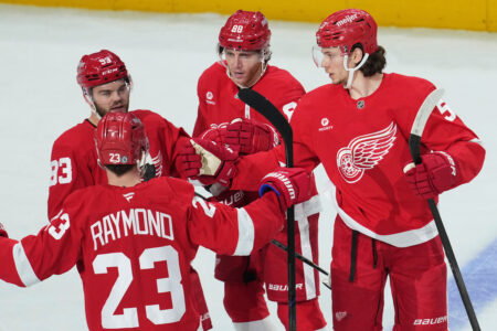 Raymond’s 100th career goal lifts Red Wings past Maple Leafs, 6-3