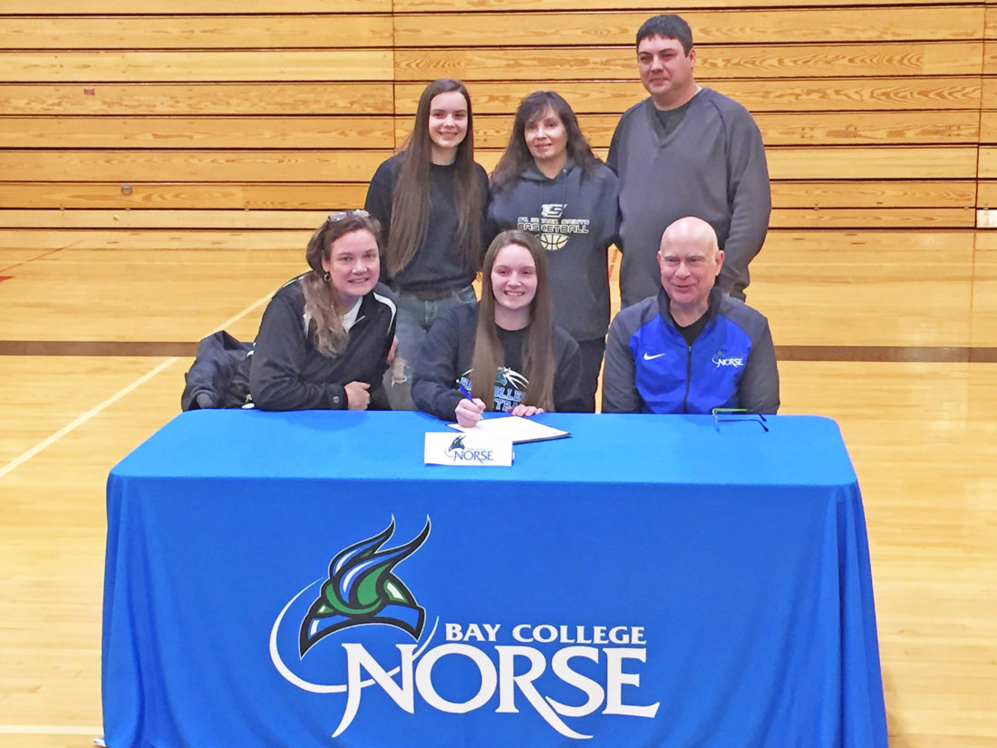 ESCANABA — Bay College women’s basketball coach Rae Drake Jr. went to the east side of the Upper Peninsula for his first signee.