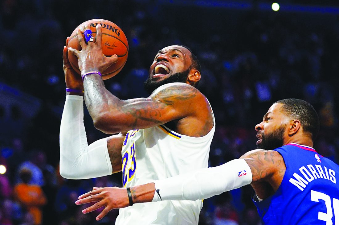 AP photo In this March 8 file photo, Los Angeles Lakers forward LeBron James, left, shoots as Los Angeles Clippers forward Marcus Morris Sr. defends in Los Angeles.