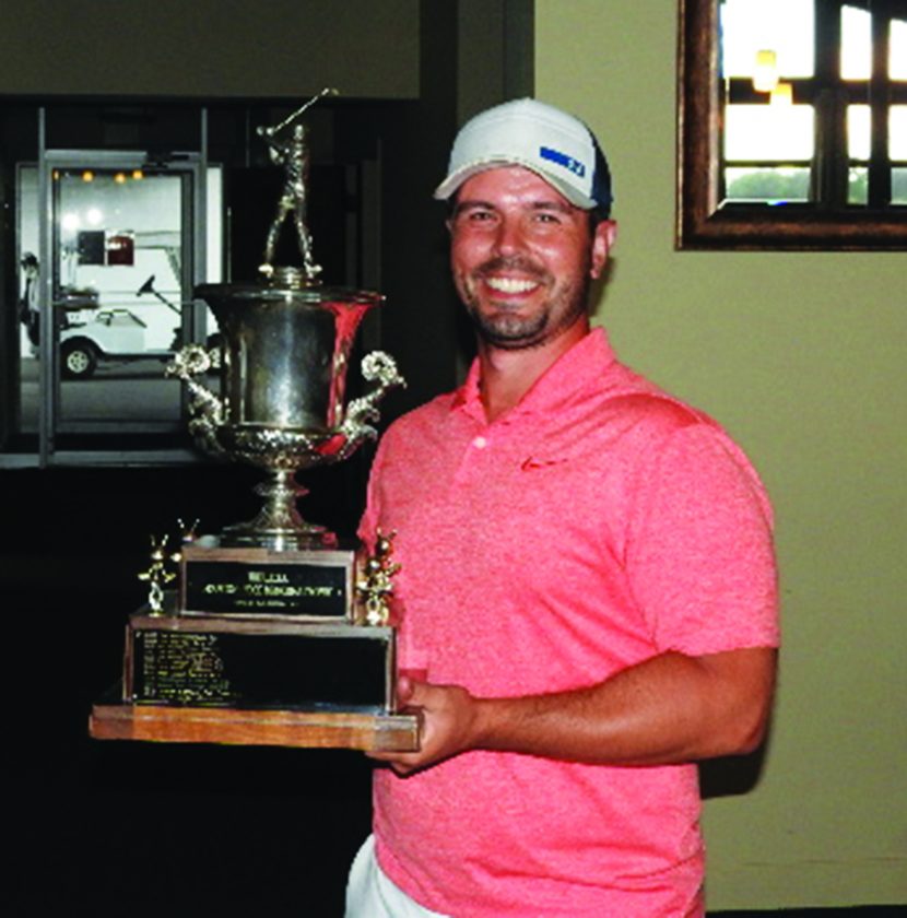 Brian Bell | Marinette EagleHerald Matt Argall of Terrace Bluf Golf and Country Club poses with the trophy after winning the 2020 men’s UPGA championship Sunday at Riverside Golf Club in Menominee.