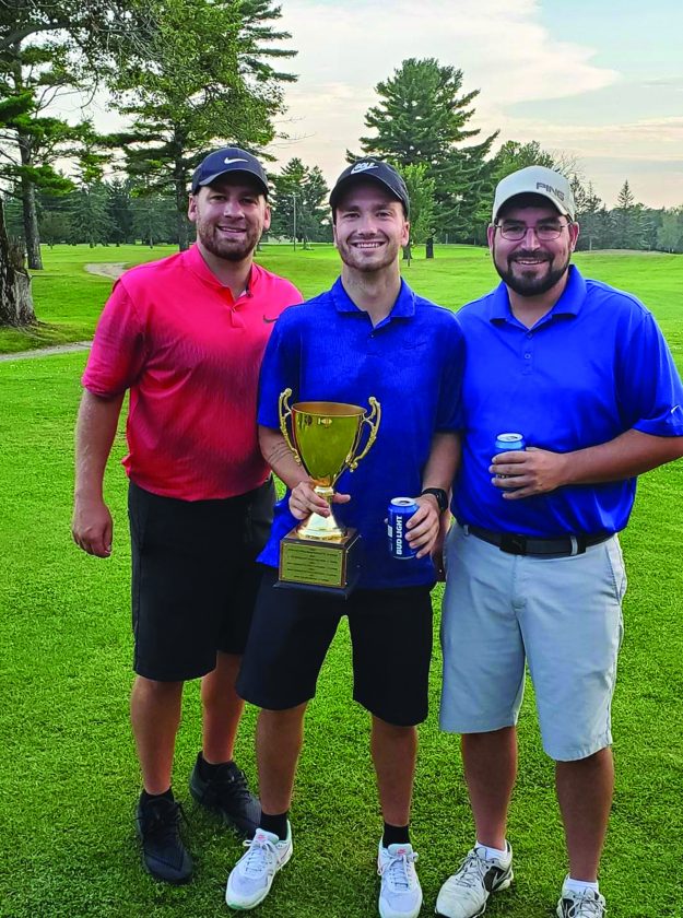 From left, Mark Gauthier, Dylan Gauthier and Chad Tirschel won the Highland Golf Club 3-man scramble Sunday.
