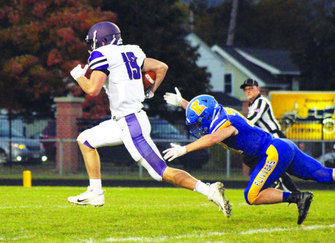 Theresa Proudfit | Iron Mountain Daily News Gladstone’s Cam Ballard (19) dodges a Kingsford tackle Friday at Kingsford.