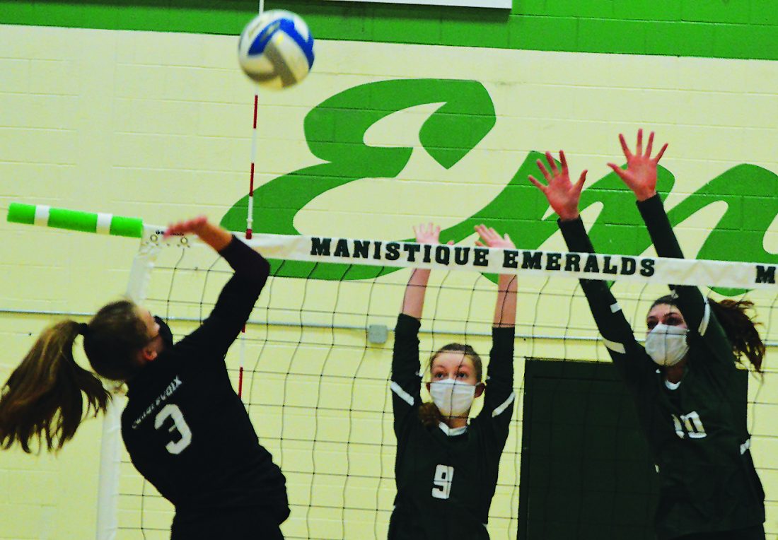 MANISTIQUE — The Manistique Emeralds’ season came to an end Tuesday night as the Charlevoix Raiders defeated the team 3-0 (25-13, 25-17, 25-19) in a Division 3 regional semifinal match in Manistique.
