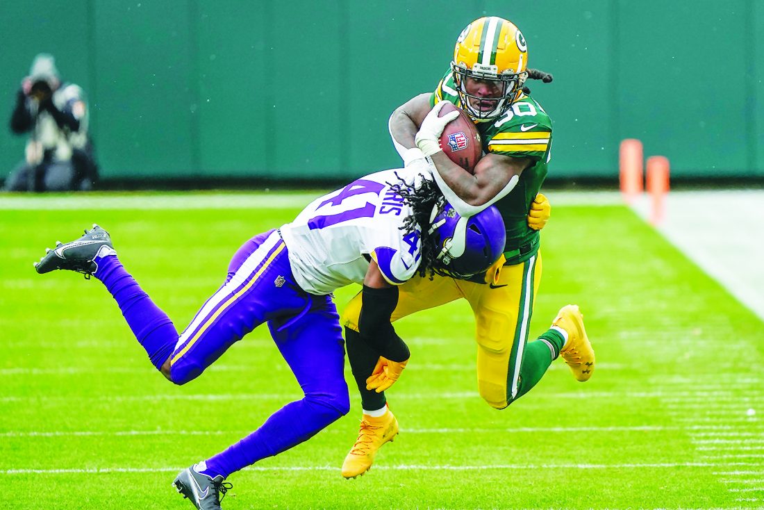 AP photo Green Bay Packers’ Jamaal Williams tries to run past Minnesota Vikings’ Anthony Harris Sunday in Green Bay, Wis.