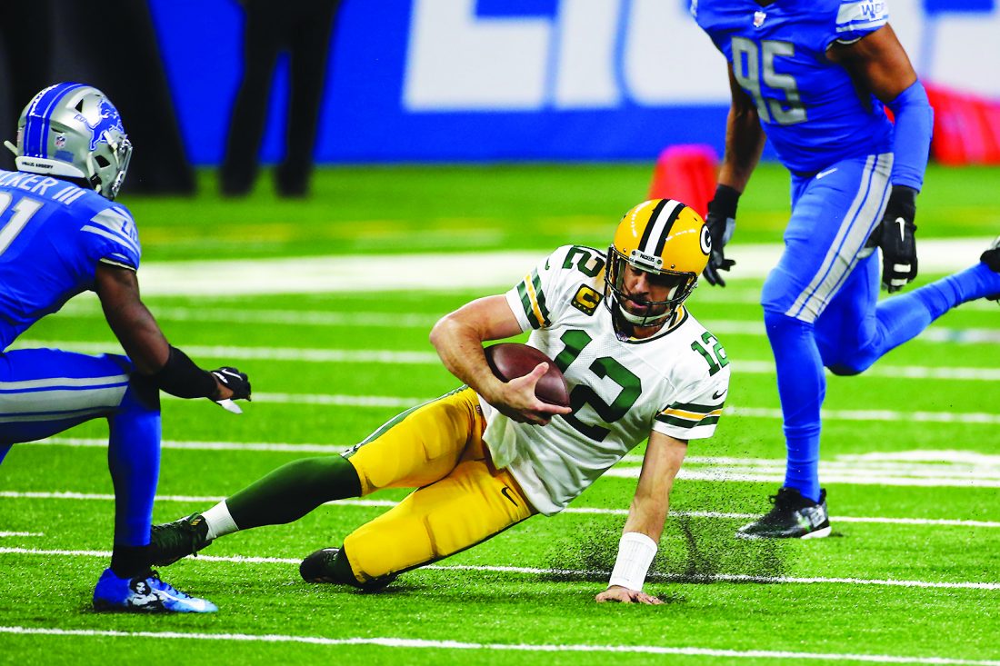 AP photo Green Bay Packers quarterback Aaron Rodgers (12) slides against the Detroit Lions, Sunday in Detroit.
