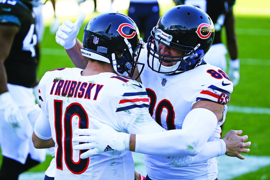 AP photo Chicago Bears quarterback Mitchell Trubisky (10) celebrates his touchdown run against the Jacksonville Jaguars with teammate tight end Jimmy Graham Dec. 27 in Jacksonville, Fla.