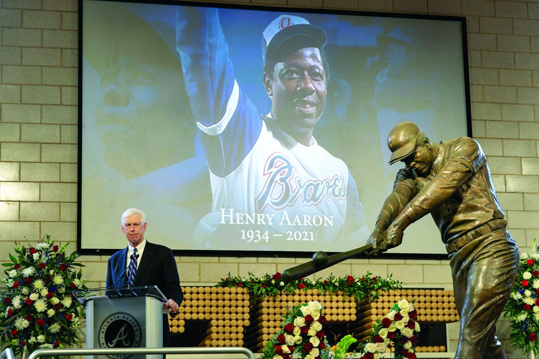AP photo Atlanta Braves Chairman Terry McGuirk speaks during “A Celebration of Henry Louis Aaron,” a memorial service celebrating the life and enduring legacy of the late Hall of Famer and American icon, on Tuesday at Truist Park in Atlanta.