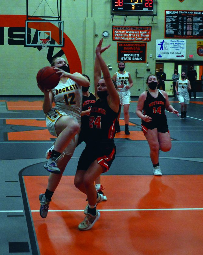 MUNISING — The Rapid River girls couldn’t buy a bucket through most of the second half here Friday night in a 43-25 basketball loss to the Munising Mustangs in a Division 4 district final.