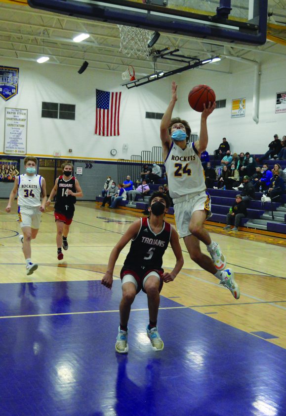 RAPID RIVER — The Rapid River Rockets boys’ basketball team (7-8) put on an offensive showcase to defeat the Forest Park Trojans (4-8) 56-22 Thursday night in Rapid River.