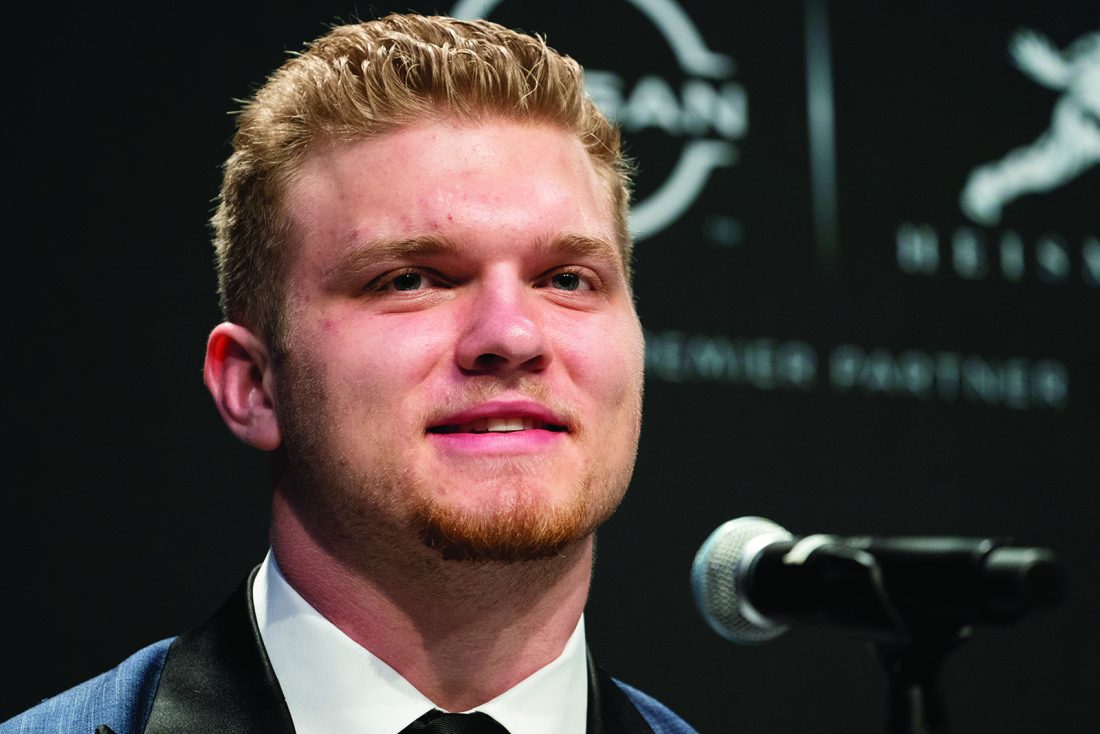 The senior defensive end earned the honor a night after finishing runner-up for the Heisman Trophy.